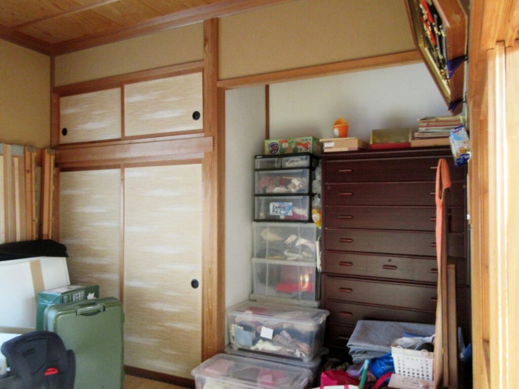 今回、縁側の間仕切りを撤去し、夫婦で使う居間とウォークインクローゼットのついた寝室に改装します。