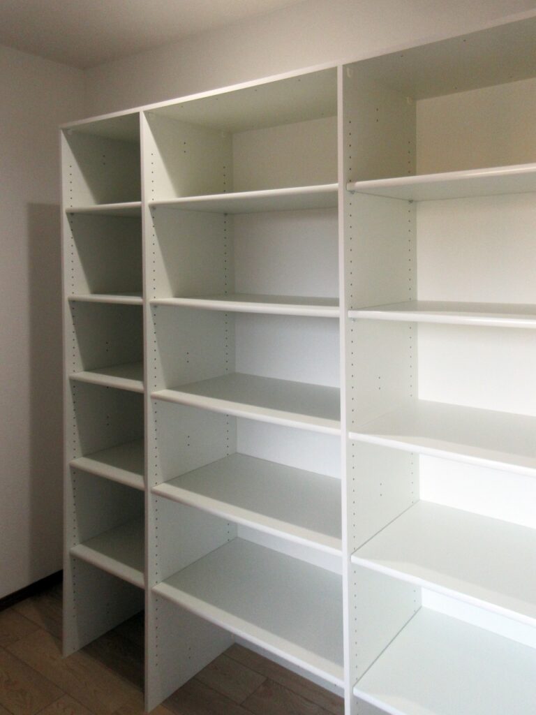 中央、新たに作った納戸には可動式の棚をつけてあります。