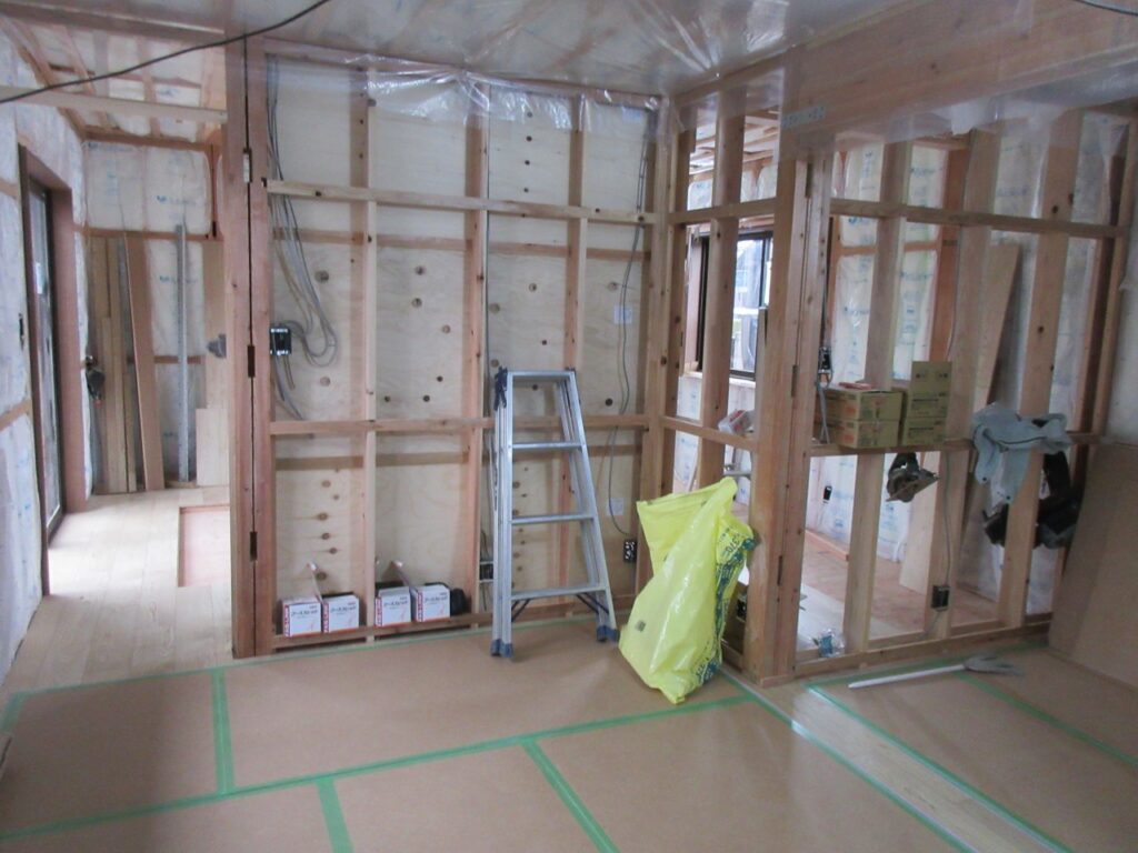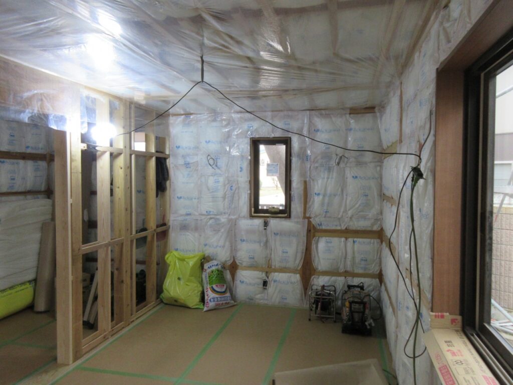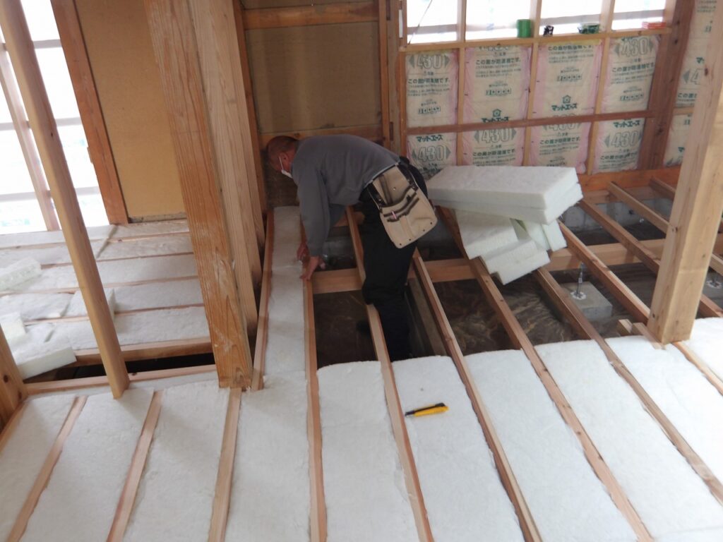 床の断熱材の施工 壁、天井への断熱材の施工 間仕切り部の耐力壁の施工