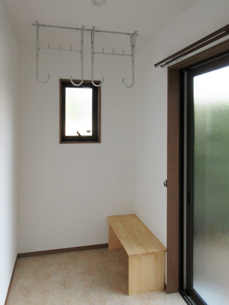 右、洗面脱衣室に隣接して物干し場を取り付けました。
