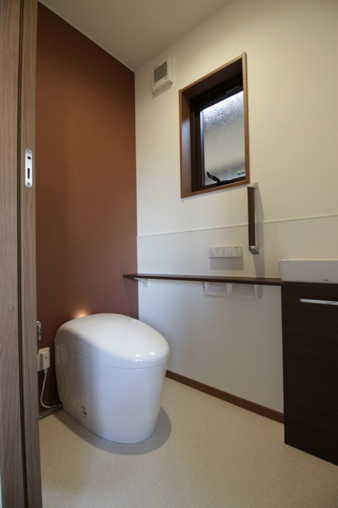 手洗いカウンターのついたトイレ 新たに作った洗面脱衣室とユニットバス